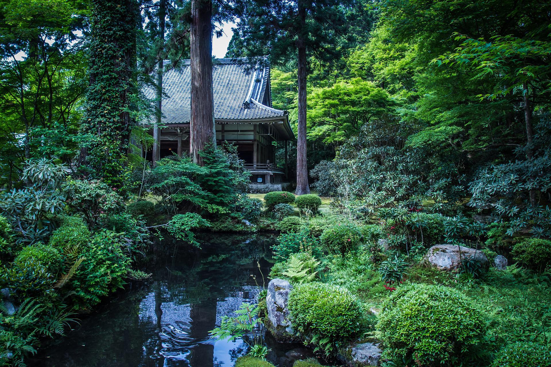 탑의 2, 3층은 금박으로 입혀져 있는 교토의 사찰 금각사