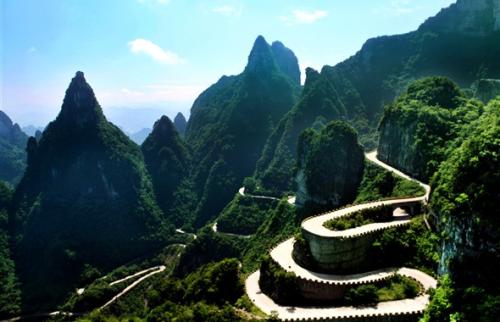 한편 천문산은 총길이 7,455m의 세계 최장길이인 케이블카를 타고 시내에서 부터 산의 정상까지 올라가게 된다. 높이차가 총 1,279m로 구름위까지 올라 가는 케이블카를 타며 산의 절경을 감상하게 되며, 케이블카에서 내려서면 총 99개의 굽이진 도로를 따라 천문동 입구에까지 이르게 된다.
