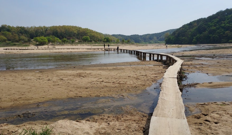 - 무섬마을의 상징인 외나무다리 건너보기
