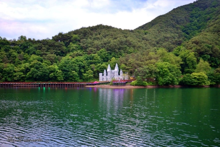 하얀 성과 자연을 배경으로 이국적인 풍경을 담을 수 있는 비룡담 저수지